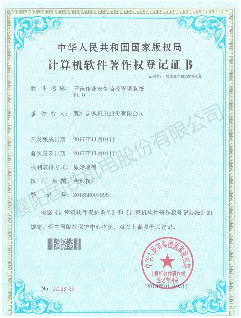 高鐵作業(yè)安全監(jiān)控管理系統(tǒng)(軟件著作權(quán)證書)