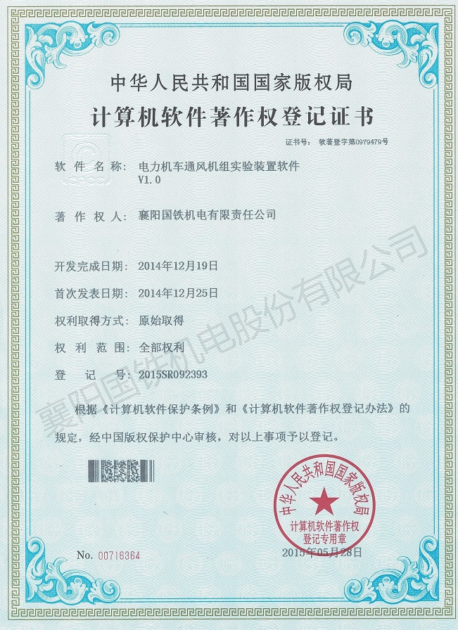 電力機(jī)車通風(fēng)機(jī)組實(shí)驗(yàn)裝置軟件(軟件著作權(quán)證書)